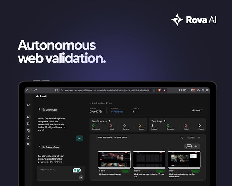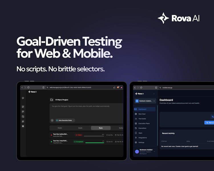 Rova AI is an autonomous, goal-driven testing agent for web and mobile applications. Instead of writing step-by-step test scripts, users define functional goals, and Rova explores applications autonomously to validate workflows, adapt to UI changes, and generate structured reports. Built for modern QA and product teams, Rova AI reduces script maintenance while improving test coverage and adaptability.