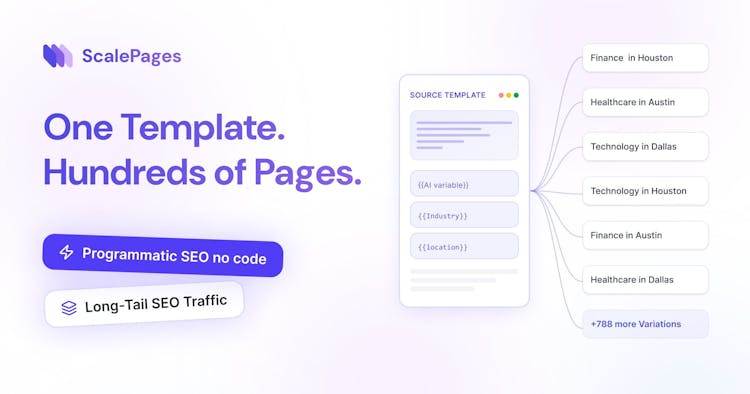 Generate and publish thousands of SEO pages automatically with no code required. ScalePages turns long tail search demand into predictable inbound leads, without manual content work or technical setup.