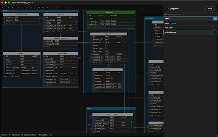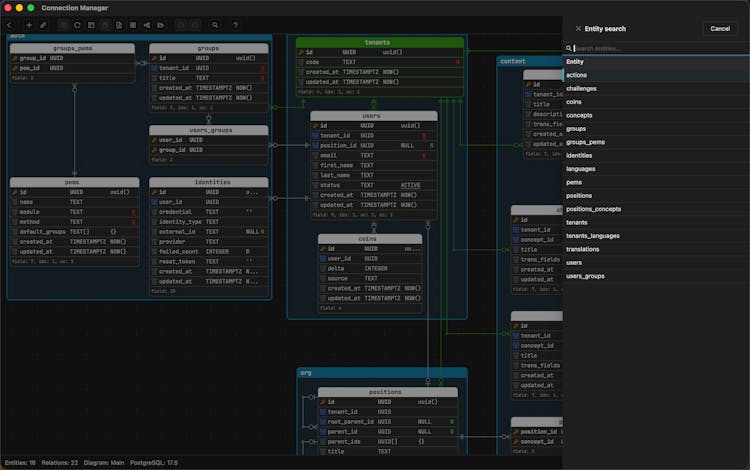 Most ERD tools were built for DBAs. Schemity is built for software engineers. 9 MB, offline-first, Git-native. Your ERDs live as plain JSON in your repo, commit, diff, and review like code. Drag fields to create relationships. Flexible lines with custom waypoints. Check constraints as first-class citizens. Compare ERD to live DB and generate the exact SQL diff. Supports PostgreSQL, MySQL, SQL Server, Supabase. No Electron. No JVM. No subscription.