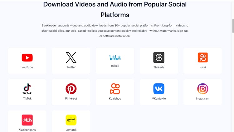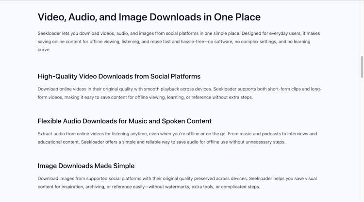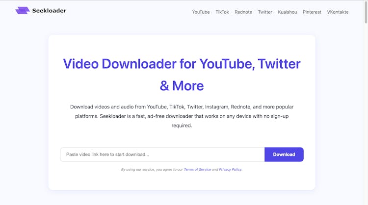 Seekloader is a fast, ad-free downloader that works on any device with no sign-up required.