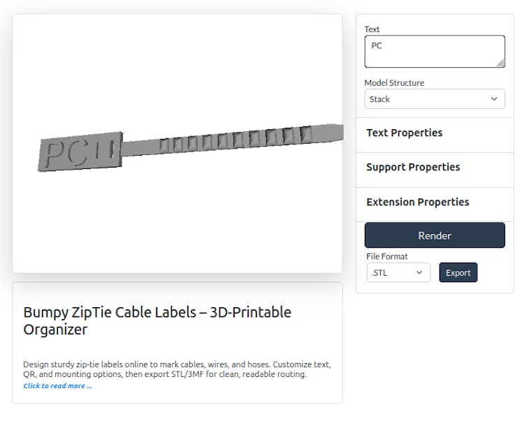 Design and generate custom 3D-printable labels in minutes, no CAD skills required.