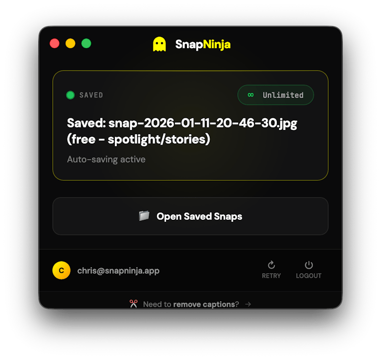 SnapNinja is a desktop app that lets you save Snapchat photos, videos, stories, and chats without triggering screenshot notifications.