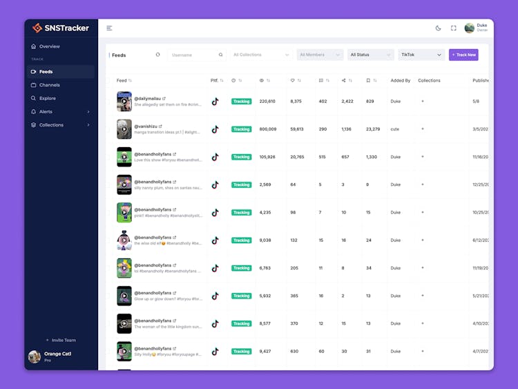 - Multiple Platforms Monitoring: Track and analyze content across TikTok, YouTube, Instagram, Threads, and more from a single dashboard.