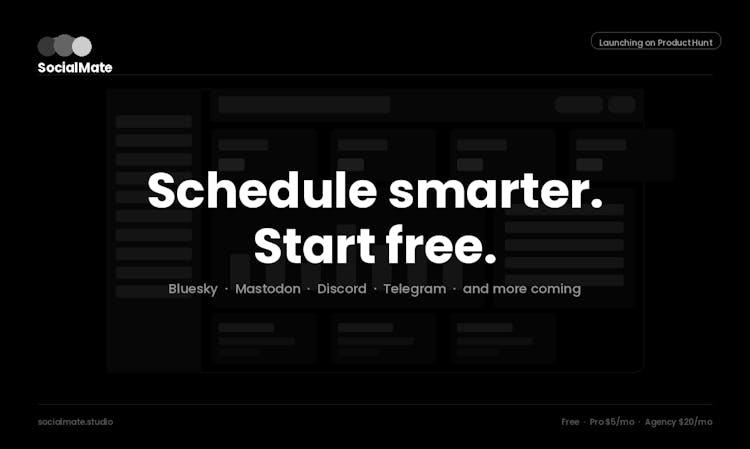 SocialMate is an AI social media OS for teams and creators: generate posts, bulk schedule across platforms, track analytics, manage clients, and scale workflows from one affordable workspace.