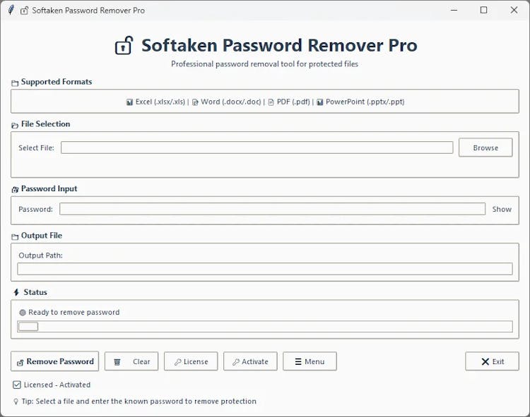 Softaken Freeware PDF Password Remover is a useful and simple tool that helps remove passwords from PDF files that users already know. This software is specifically designed for users who want to avoid the hassle of repeatedly entering passwords. The tool's interface is simple and user-friendly, making it easy for even new users to operate without any technical knowledge. This software only removes known passwords and makes your PDF operable without a password. It does not recover forgotten passwords. It is safe and completely legal to use because it only works on files that users already have access to.