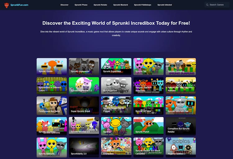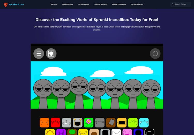 SprunkiFun is an online platform that allows users to play the Sprunki Incredibox Mod, a music game that encourages creativity and musical exploration.