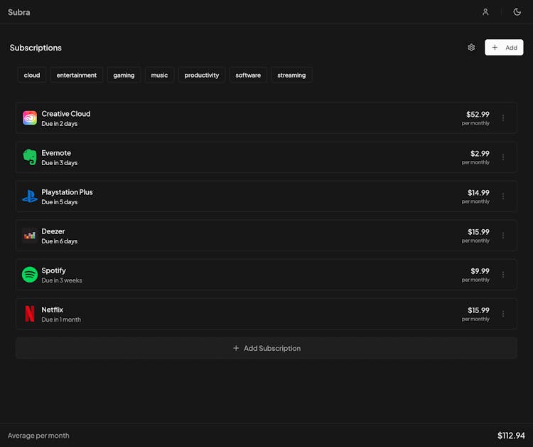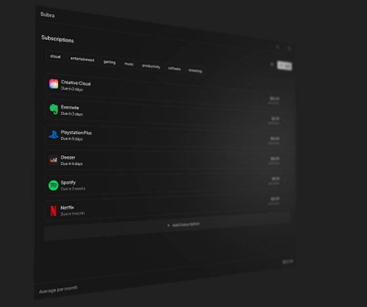 - Free subscription tracker - Monitor all your recurring expenses in one place