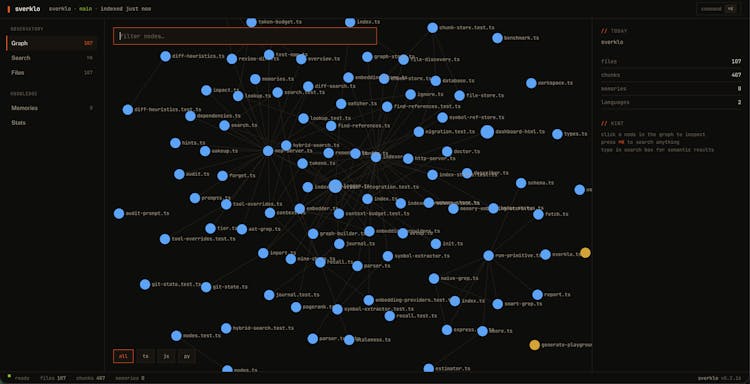 Local-first code intelligence MCP server. Gives Claude Code, Cursor, and Windsurf semantic search, dependency graphs, blast-radius analysis, diff-aware PR review, and codebase health audits with A-F grading. 20 MCP tools, zero cloud, zero API keys.