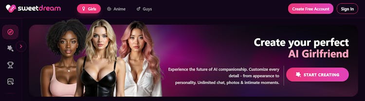 Discover immersive AI companionship on SweetDream AI Chat with realistic AI girlfriends designed for engaging, meaningful conversations. Create stunning AI-generated images and videos, personalize your virtual partner, and explore emotionally rich interactions anytime. SweetDream AI blends advanced artificial intelligence with creativity and connection, offering a free AI girlfriend chat experience that feels natural, interactive, and deeply engaging for users seeking modern virtual relationships and entertainment.