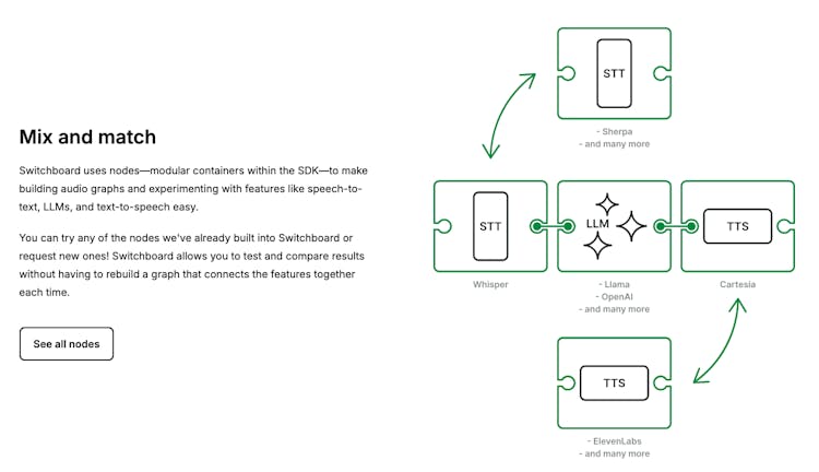 Tired of cloud voice AI bills eating your runway? Switchboard is a cross-platform audio SDK that lets you build complex audio pipelines with modular, Lego-like components.