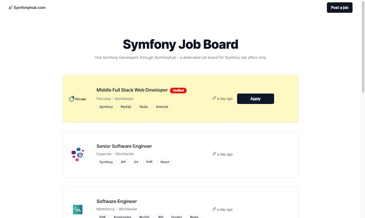 Symfony Job Board was launched by Piotr in January 17th 2023.