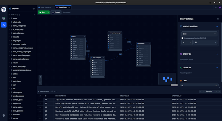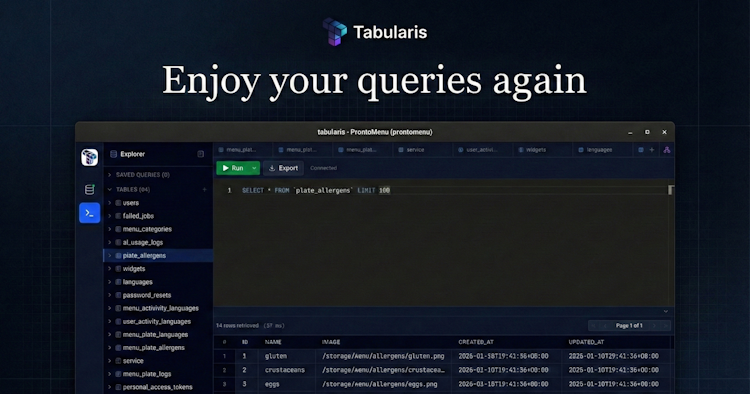 Tabularis helps you explore and manage your databases without the clutter. Quickly browse tables, run queries, and understand your data — all with a fast, minimal interface built for developers. Perfect for side projects, prototypes, or your daily workflow.