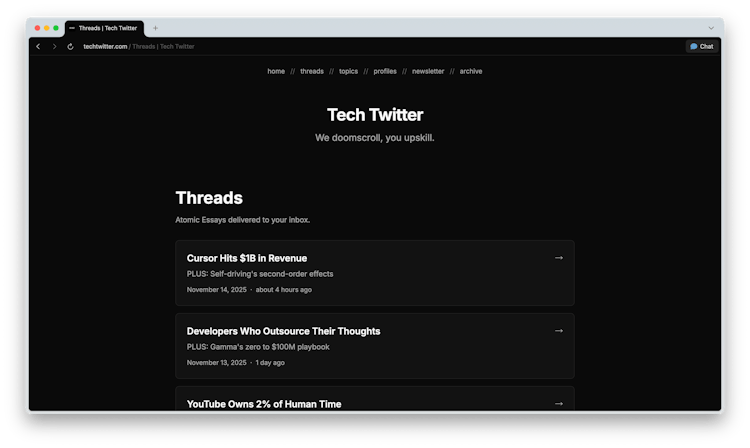 Twitter is incredible, but you're often searching for needles in a noisy, sloppy haystack. We've built a database that updates daily of the best tech content on Twitter.
