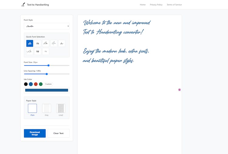 Free Text to Handwriting Converter Online! Transform typed text into realistic handwritten notes instantly. Customize fonts, paper, and ink. Perfect for students & teachers. Try our tool now!