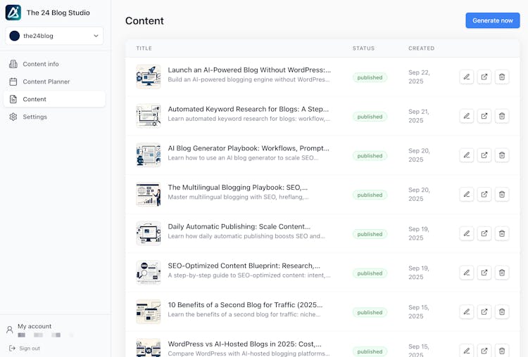 The24Blog is a fully hosted AI blogging platform that creates, optimizes, and auto-publishes SEO-ready posts daily—no setup, no stress, just growth.