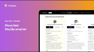 ThinkBake transforms research data into living, data-trained personas you can chat with — helping teams spark ideas, test them fast, uncover actionable insights, and validate product decisions in minutes. Stop guessing. Start validating.