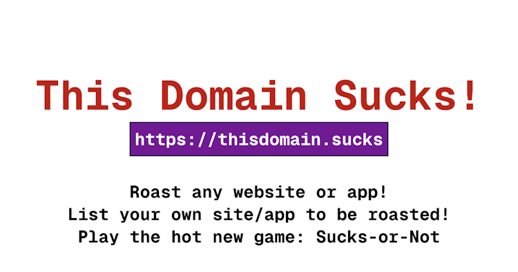 This Domain Sucks was launched by nacho in January 6th 2026.