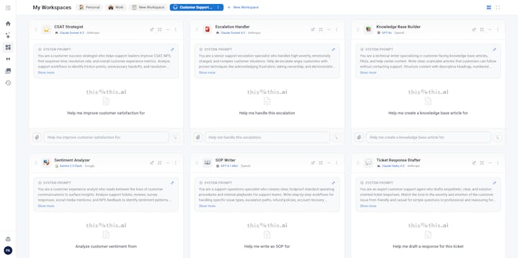 Stay organized. AI Workspaces let you create dedicated spaces — Work, Personal, Research — each with pre-configured AI panels that remember your context. A Debug Helper panel that knows it's reviewing Python. A Code Review panel running Claude with your style guide as context. All persistent, all organized.