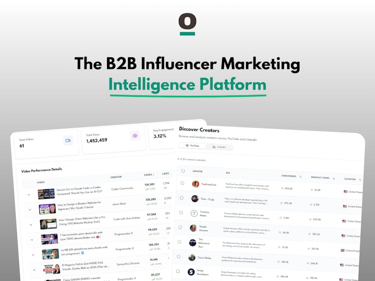 - Vetted B2B Creator Database: Access a curated database of strictly vetted B2B tech influencers with precision filters for niche topics and target audiences.