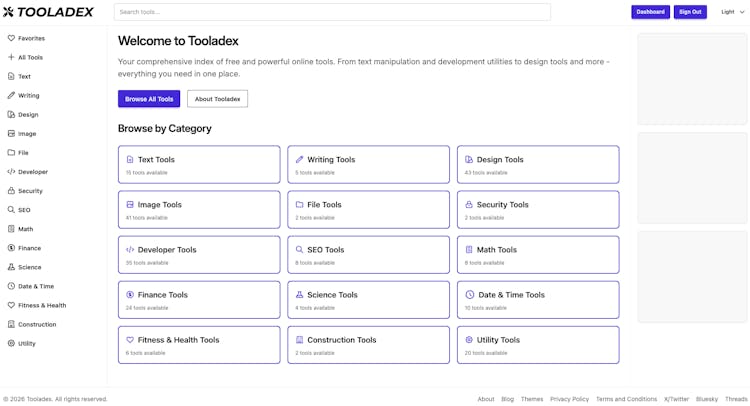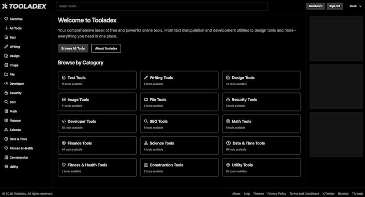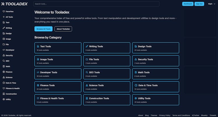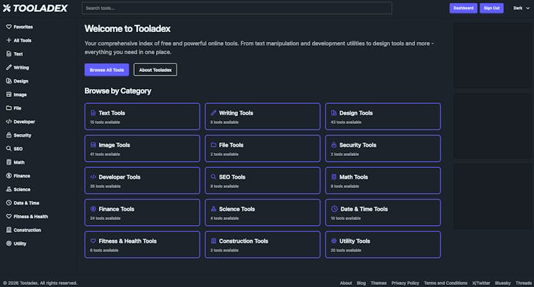 Your comprehensive index of free and powerful online tools. From text manipulation and development utilities to design tools and more - everything you need in one place.