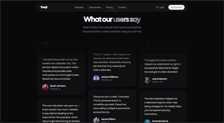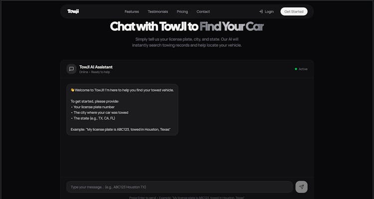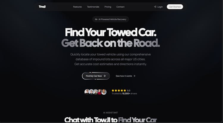 AI-powered towed vehicle finder that searches multiple impound databases simultaneously. Enter your license plate, get your car's location instantly. Plus 24/7 plate monitoring alerts — know the moment your car gets towed.