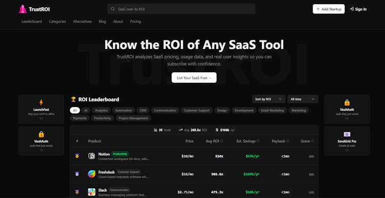 TrustROI shows the real ROI of SaaS products so founders, operators, and teams can make smarter subscription decisions.