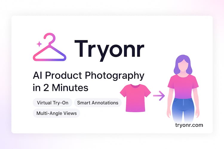 Tryonr is an AI-powered virtual try-on and product photography studio built for Amazon, Shopify, Etsy, and Taobao sellers. Upload a garment and a model (or generate one with AI) to create realistic model shots, multi-angle galleries, 360° views, and feature-annotated images from a single product photo.