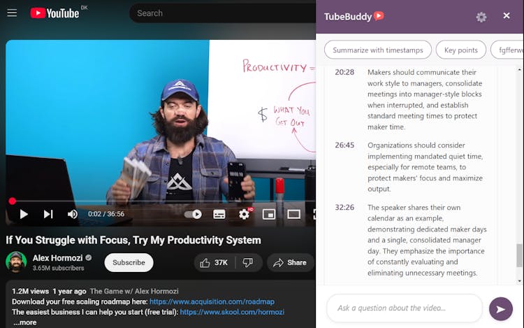 Transform YouTube videos into interactive AI-powered conversations with intelligent summaries, precise timestamp navigation, and instant access to key insights and takeaways