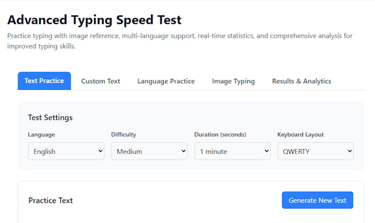 Perfect for students, job seekers, programmers, content writers, and anyone looking to boost productivity, this tool offers unlimited practice sessions, multiple difficulty levels, and instant performance insights. With consistent practice, you can significantly improve your speed, reduce typing errors, and increase daily work efficiency.