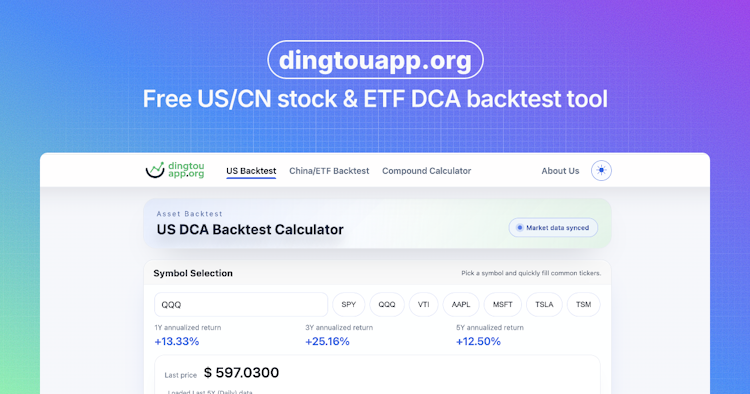 Free US stock & ETF DCA backtest tool. Pulls historical prices to calculate DCA returns, compounding growth, and performance with clear charts.