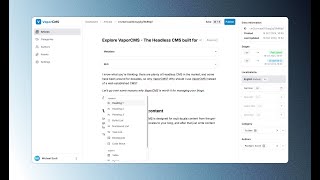 VaporCMS is a headless CMS with an intuitive editor, built for blogs that need multi-language support, customizability, and optimized SEO performance.