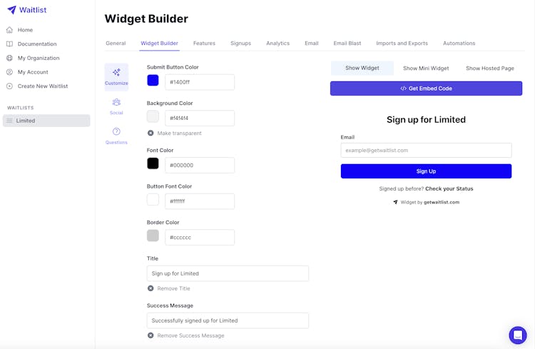 Waitlist is the industry-leading tool for setting up waitlists. We offer built-in referrals so existing users can refer others, integrations with over 5000 apps, custom email support, no-code and API docs, and a large suite of other features to customize your launch! We have the best free tier and offer both chat and email support 24/7.