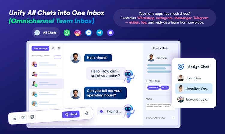 → Use a Unified Team Inbox to manage every message in one place with assignments, notes, and tags.