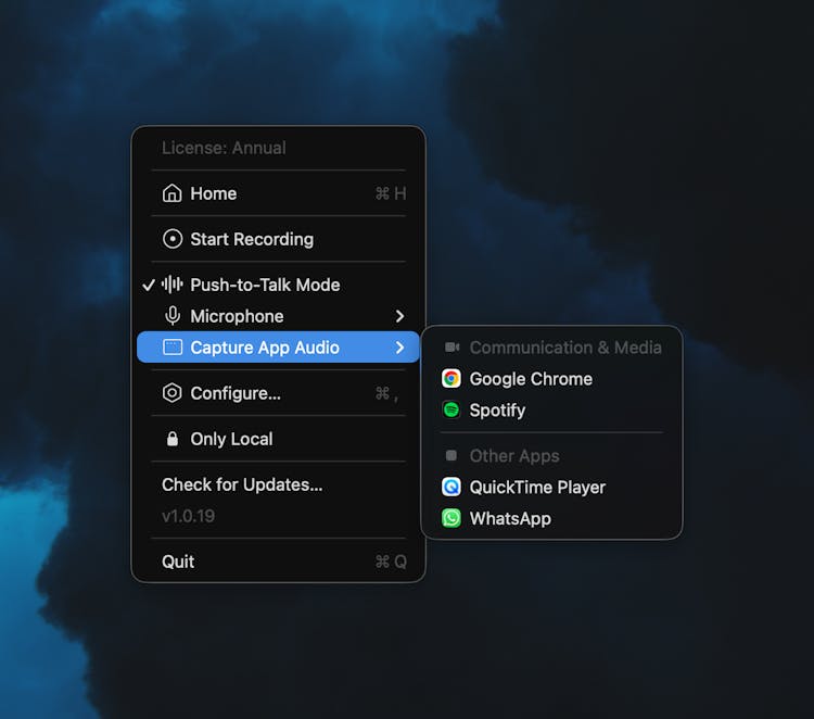 a native macOS menu bar app for push-to-talk voice dictation. Hold a hotkey, speak, and your words stream into any app — email, Slack, VS Code, Notes, anywhere. Record your stand-ups and meetings without inviting any weird agent to your call, get meetings and reminders of who said what.