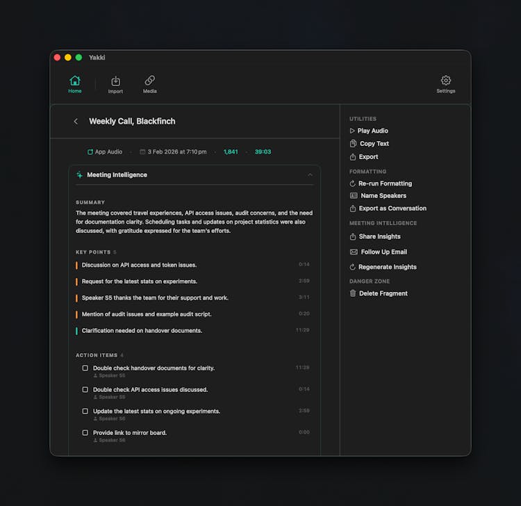 Built in Swift/SwiftUI with AVAudioEngine, Yakki runs Parakeet and Whisper entirely on-device for sub-200ms latency (0.1 Real-Time Factor). No audio leaves your Mac if you do not want to.